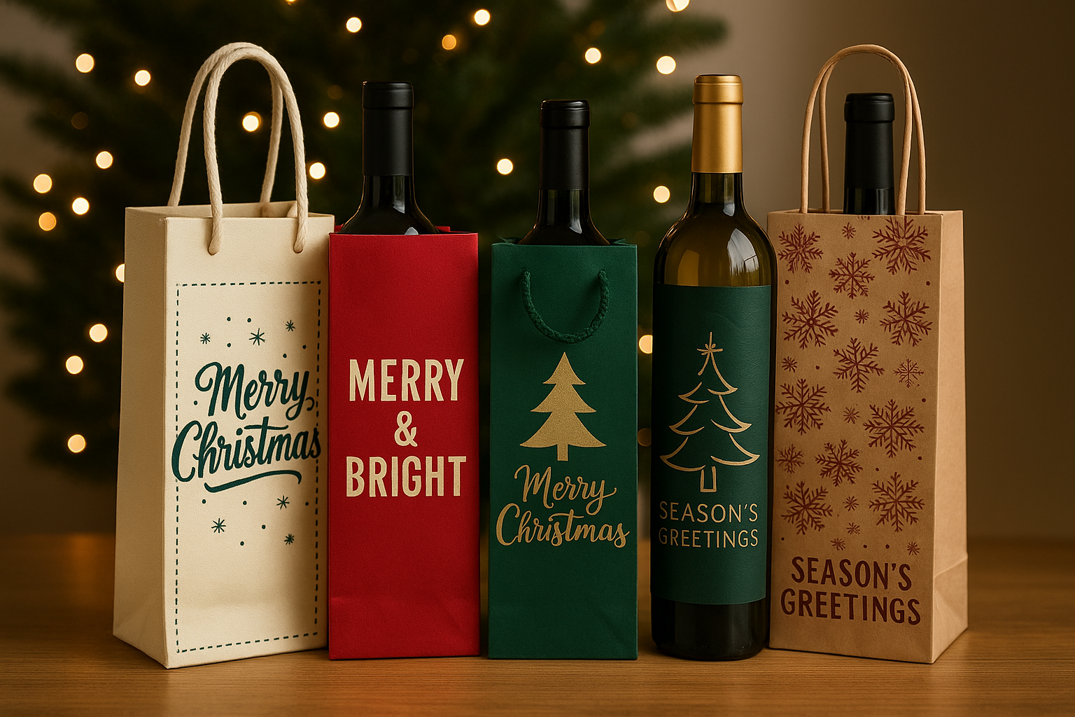 Chcete vybrat tašku na víno, která bude pod stromečkem opravdu zářit? Prohlédněte si naši nabídku pevných, elegantních a cenově dostupných vánočních tašek na víno – od přírodního kraftu až po luxusní černé tašky s textilním uchem. Vyberte obal, který podtrhne kouzlo vašeho dárku.